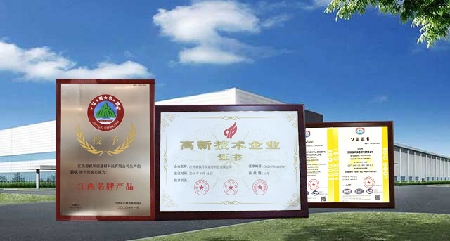 企業榮獲由“江西省科學技術廳”“江西省財政廳”“國家稅務總局江西省稅務局”聯合頒發的《國家高新技術企業》認定證書,產品通過《ISO9001全面質量管理體系證書》、碧楓真石漆獲得由江西省名牌戰略促進會頒發的《江西省名牌產品》證書,公司生產的建筑反射隔熱保溫涂料產品已成功入庫《湖南省工程建設行業綠色節能、技術、材料、產品庫》證書。